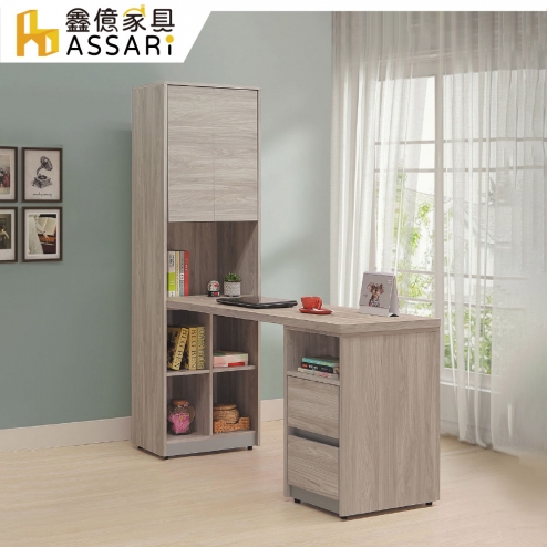 系統雲衫色5.2尺L型伸縮書桌(寬155x深60x高191cm)