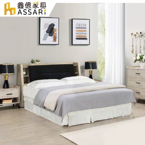 黑舞氏插座床頭箱(雙大6尺)