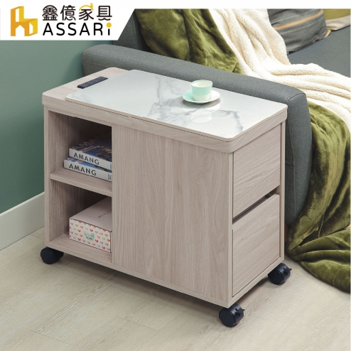 布頓岩板插座活動沙發邊櫃(寬30x深69x高60cm)