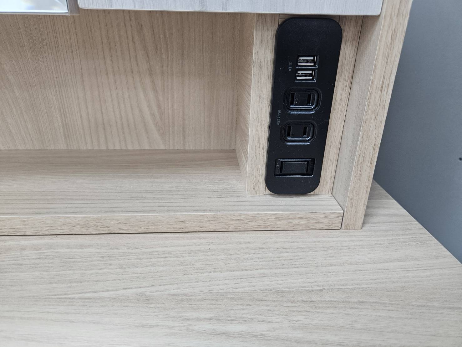 3.附插座設計,吹頭髮、捲髮棒,手機充電都方便