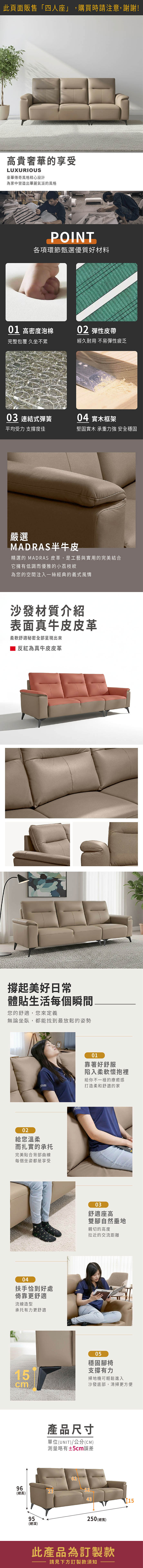 馬勒尊貴四人座半牛皮沙發(訂製款)