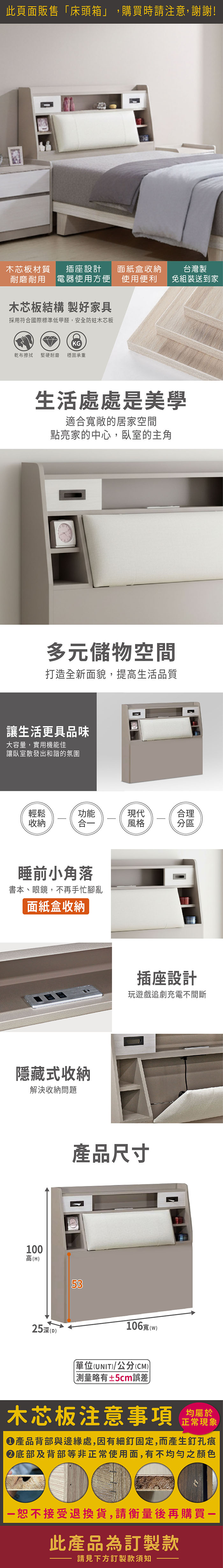 安迪插座收納床頭箱(單大3.5尺)(訂製款)