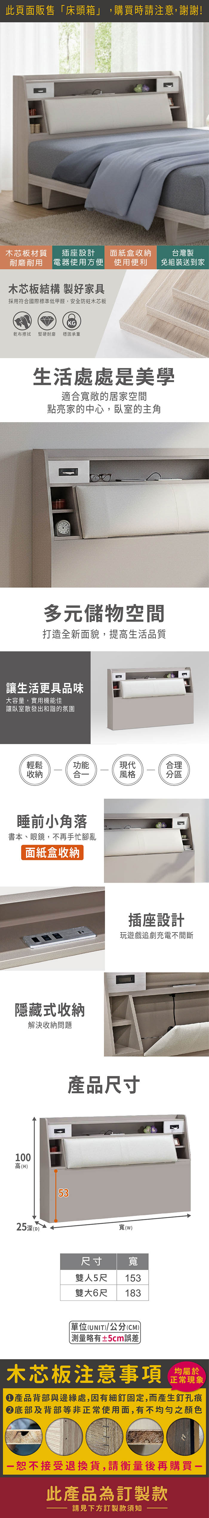 安迪插座收納床頭箱(雙人5尺)(訂製款)