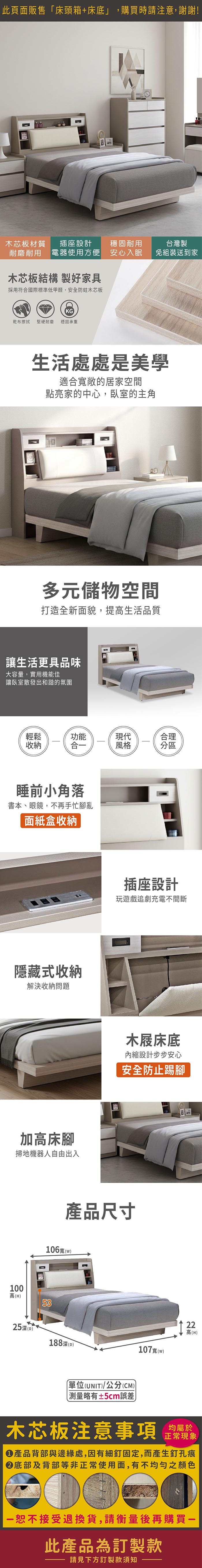 安迪日式房間組(床頭箱+床底)-單大3.5尺(訂製款)