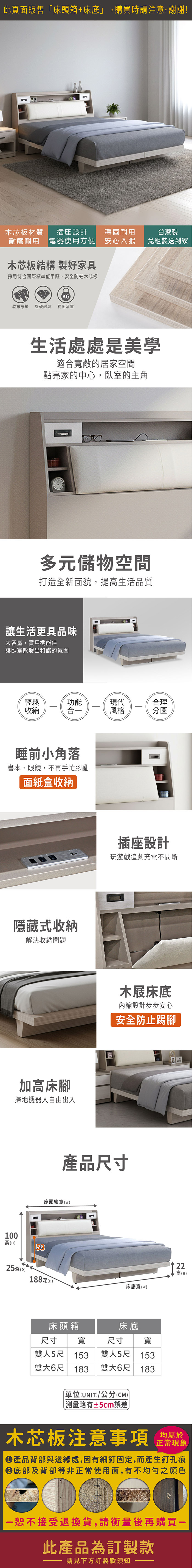 安迪日式房間組(床頭箱+床底)-雙大6尺(訂製款)