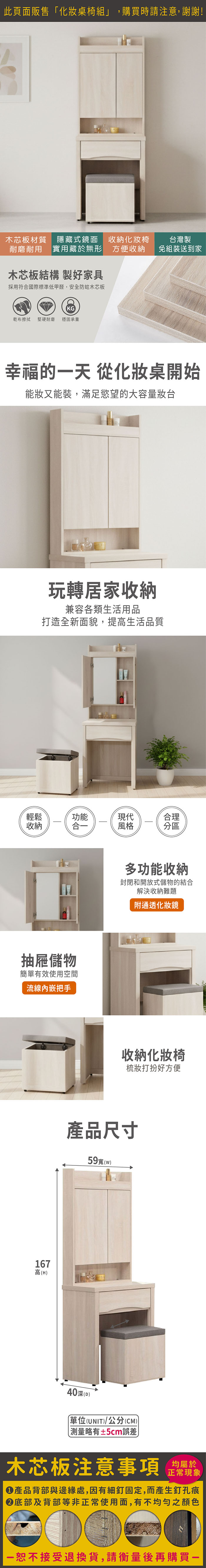 凱威2尺化妝桌椅組(寬59x深40x高167cm)