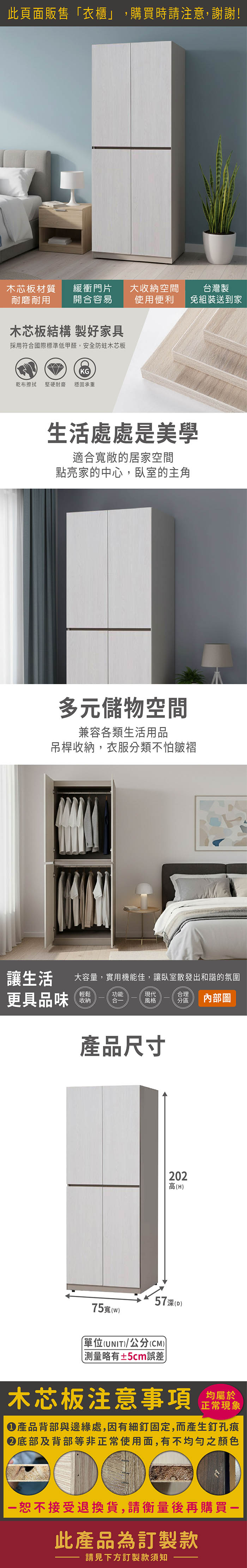安迪2.5尺雙吊衣櫃(寬75x深57x高202cm)(訂製款)