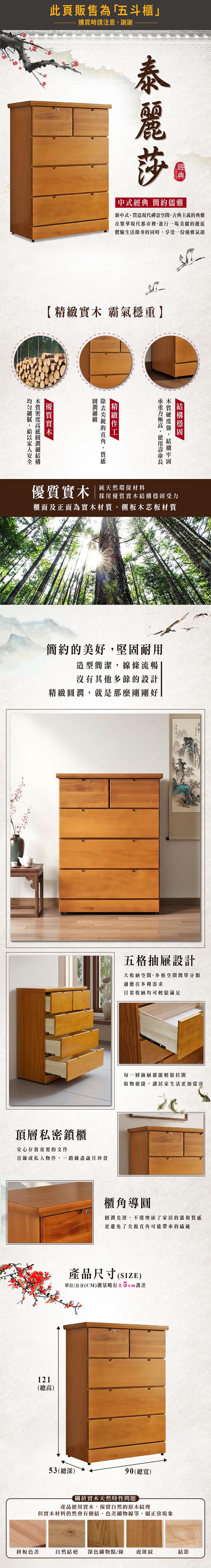 泰麗莎實木五斗櫃(寬90*深53*高121cm)