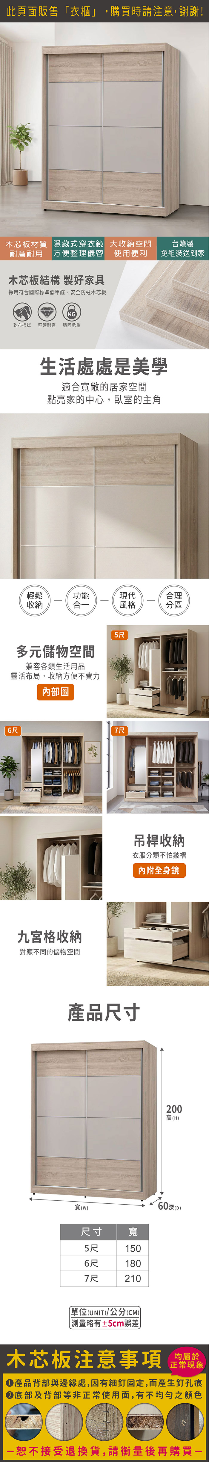 布茲7尺推門衣櫃(寬210x深60x高200cm)