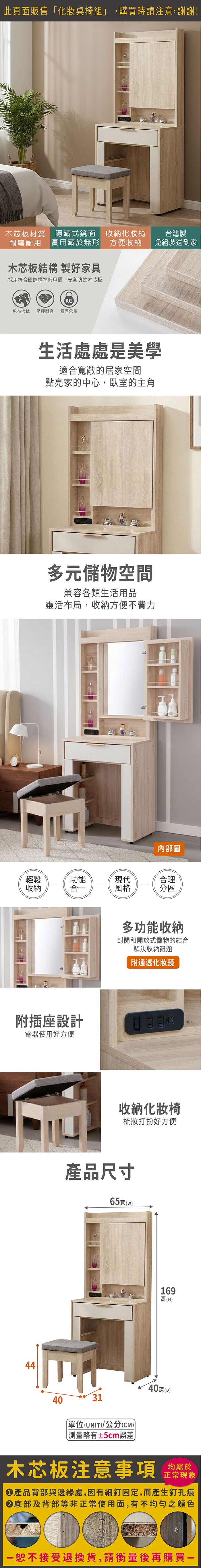 布茲2.2尺化妝桌椅組(寬65x深40x高169cm)