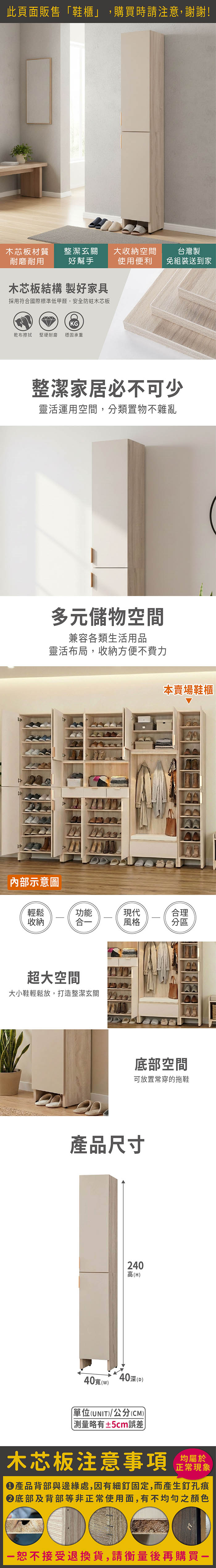 布茲1.3尺雙門高鞋櫃(寬40x深40x高240cm)