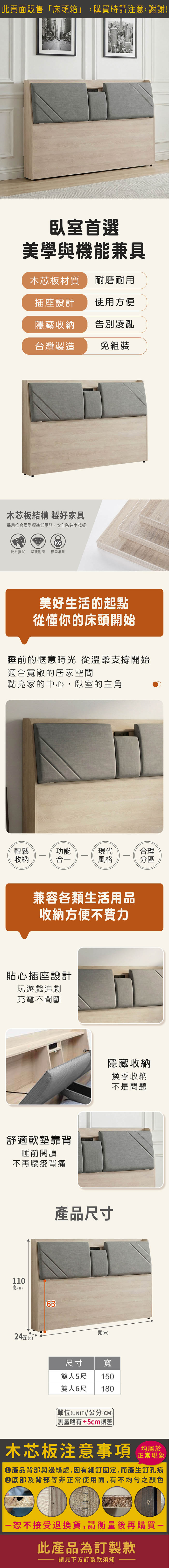 漫多麗插座收納床頭箱(雙人5尺)(訂製款)