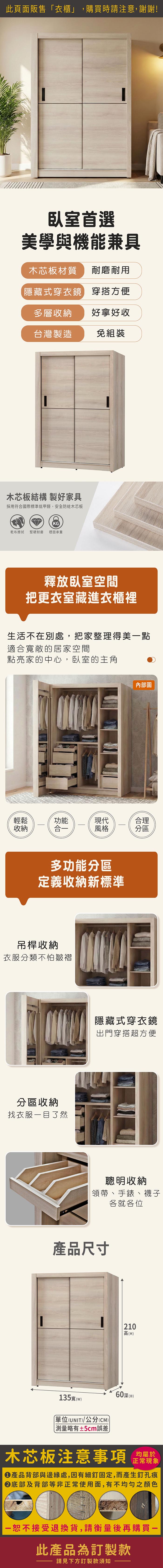 漫多麗4.5尺推門衣櫃(寬135x深60x高210cm)(訂製款)