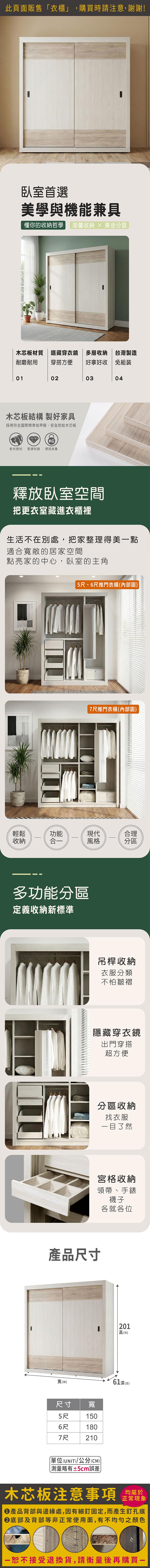 奧思5尺推門衣櫃(寬150x深61x高201cm)
