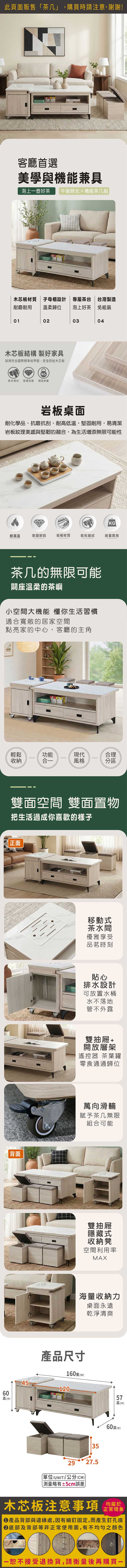 花鄉茶嶼機能5.3尺岩板泡茶大茶几(附椅凳)