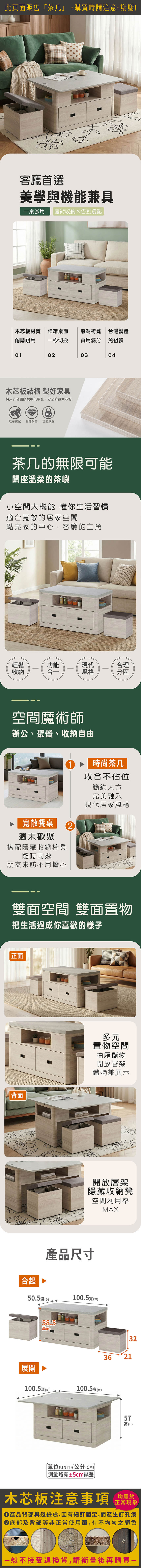 拉部伸縮桌面大茶几(附椅凳)