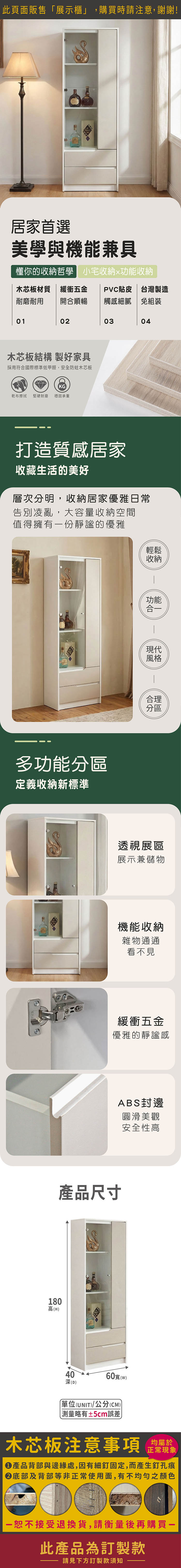 錫德2尺展示櫃(寬60x深40x高180cm)(訂製款)
