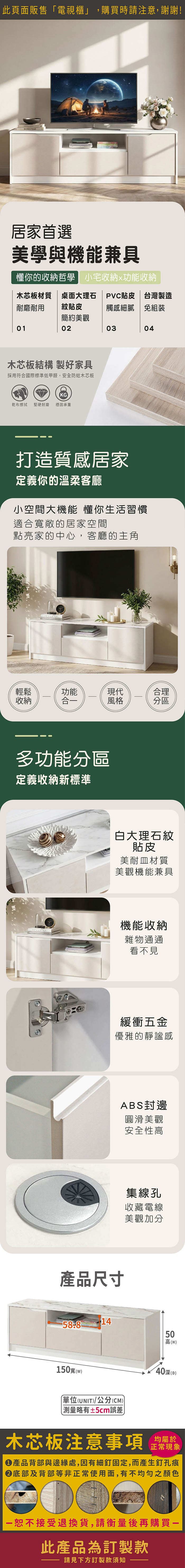 錫德5尺電視櫃(寬150x深40x高50cm)(訂製款)